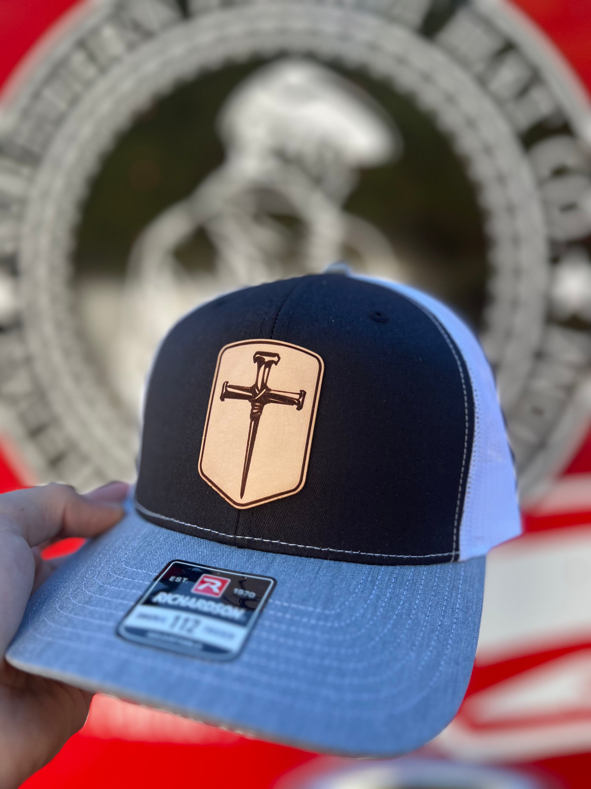 This is our He Gave It All Hat. It is a six panel trucker hat with a mesh back and snap back closure. The brand of this hat Richardson. All patches are real leather. Color of leather may slightly vary from hat to hat due to the nature of the leather, as well as with wear.